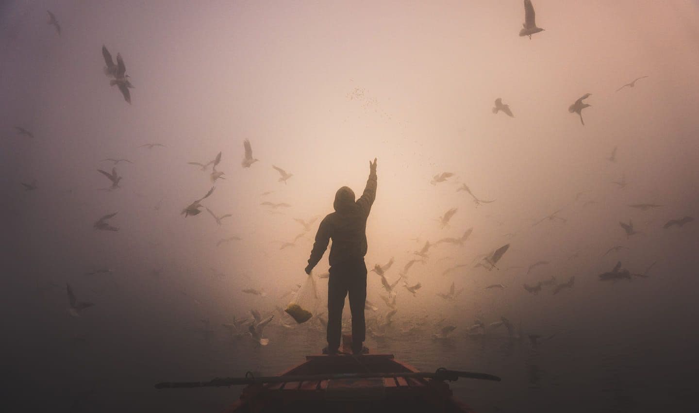 A cold and dark December morning. A thick mist hangs over the dawn. His boat pierces through the calm glacial waters. The mist does not deter him, for he has rowed in many such mornings before. What most dearly awaits him, is not the destination nor his duty, but the migratory birds. Over the years, they have become his most cherished friends who come to see him once a year. The only sounds heard in this serenity are that of the flapping of wings and of him sprinkling sunflower seeds around him....